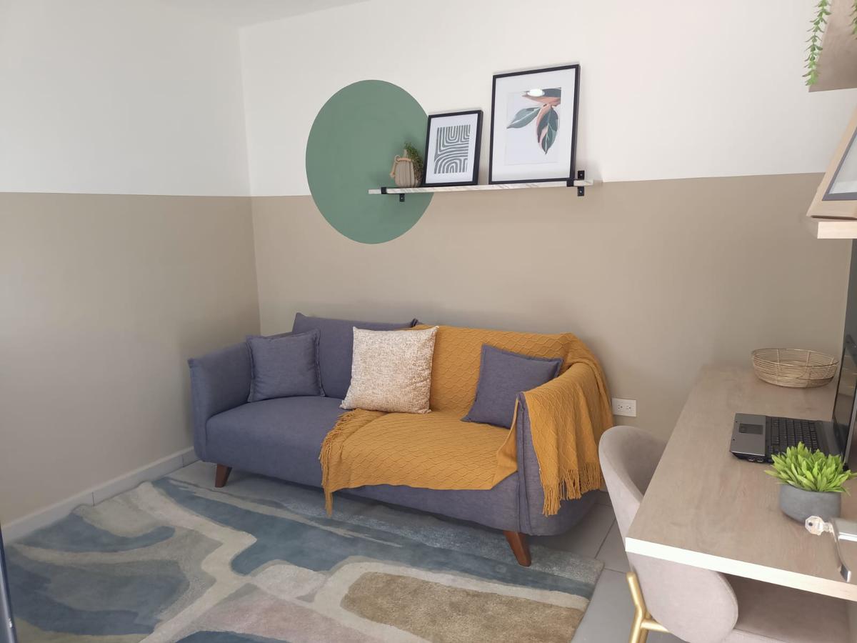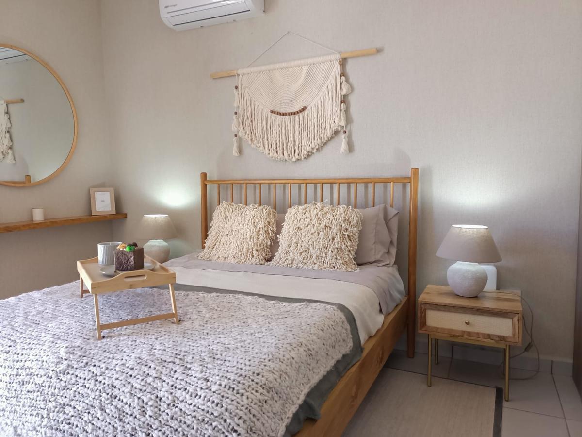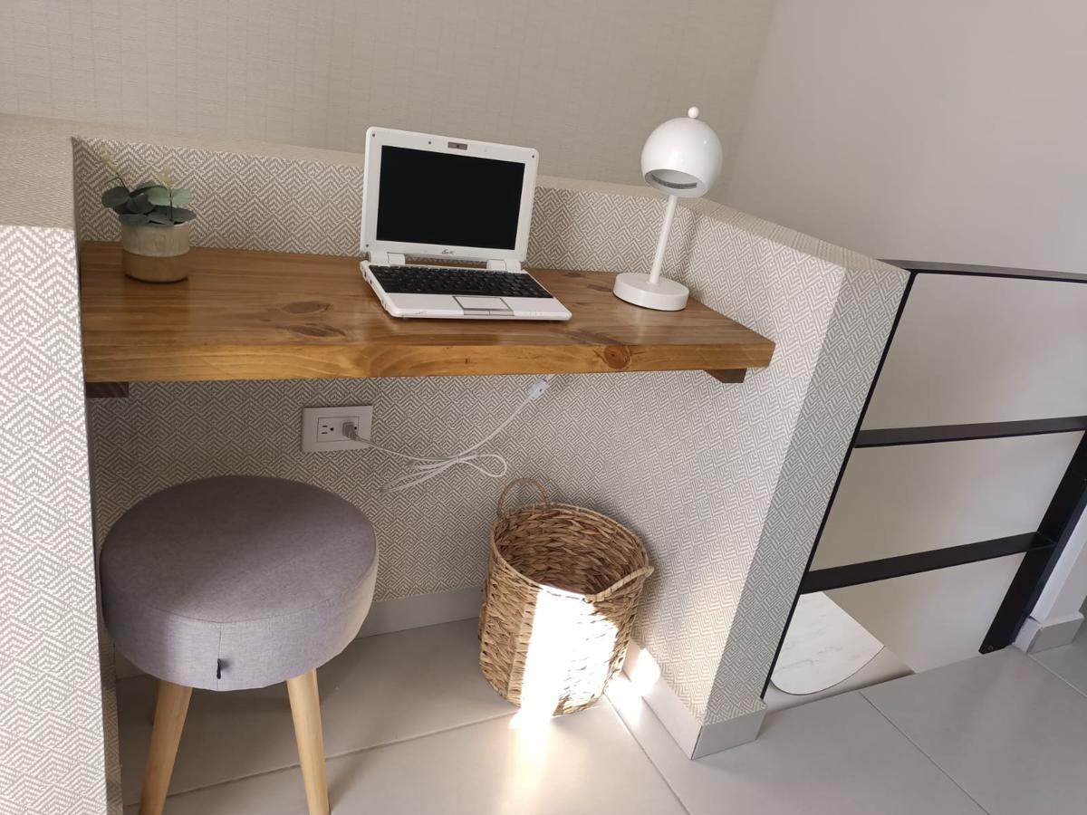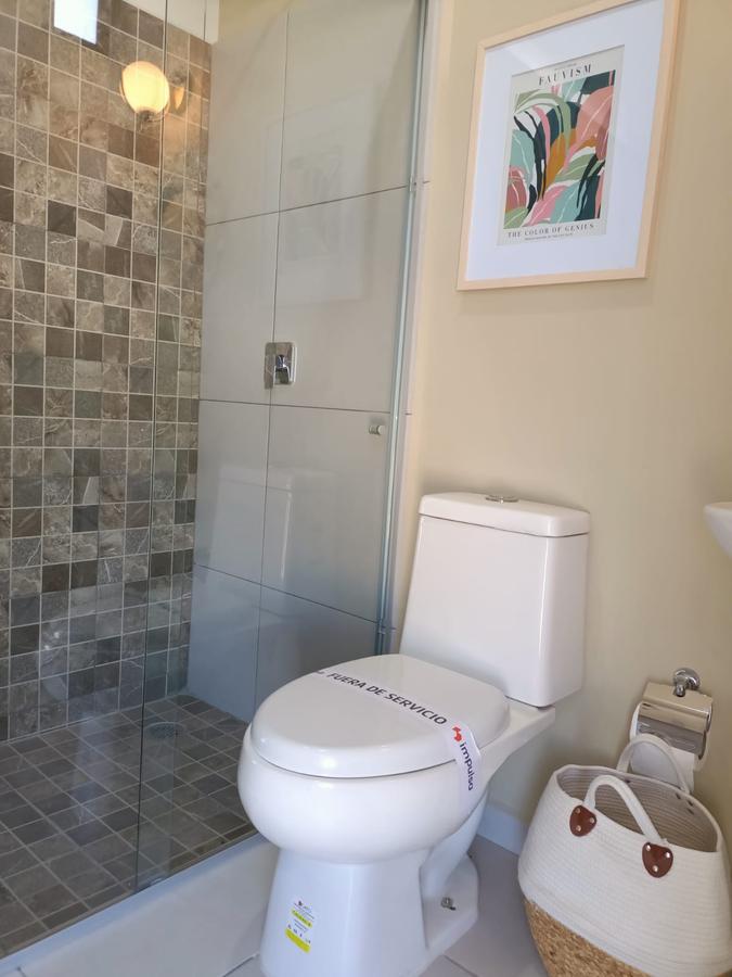 Cochera para 2 autos, sala, comedor, cocina equipada, recámara, baño completo, cuarto para lavado, terraza con jardín, cisterna.